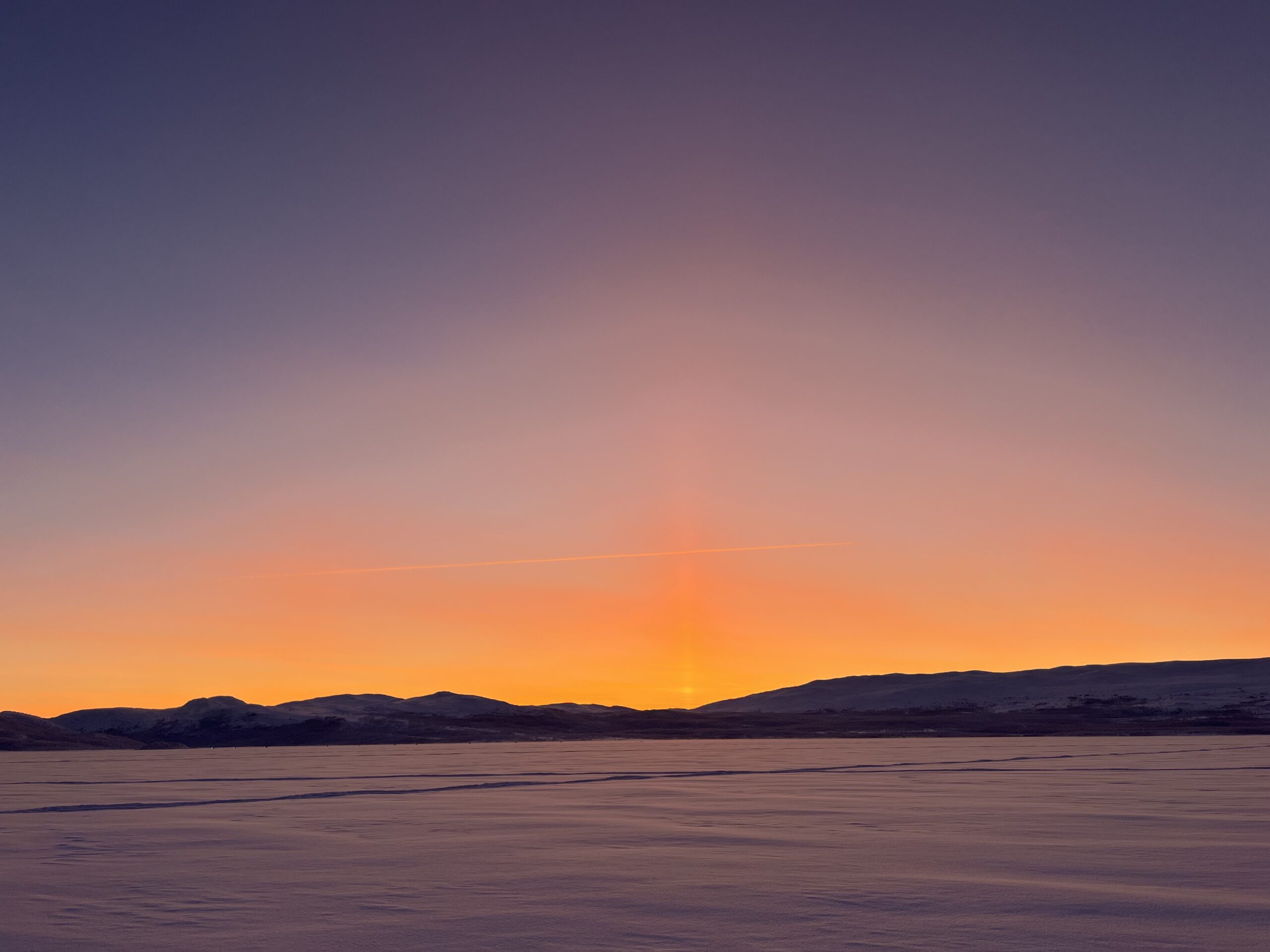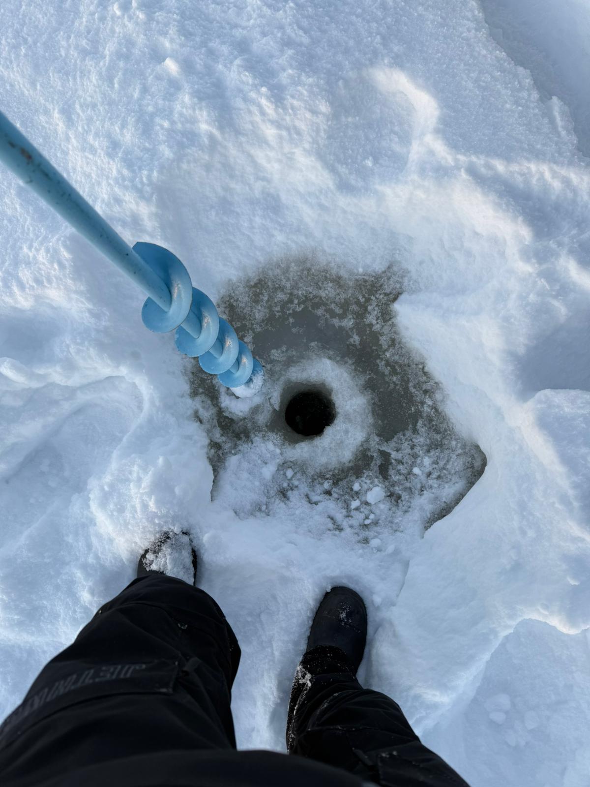 When you arrive at the lake, the ice is covered in pristine snow. The horizon is lit by a pale line of the rising sun, which colors the sky a delicate pink. The auger sinks slowly into the ice, and its rhythmic drilling breaks the otherwise perfect silence. When the water sparkles at the bottom of the hole, it feels as if you have opened a small window into the winter world of the lake.