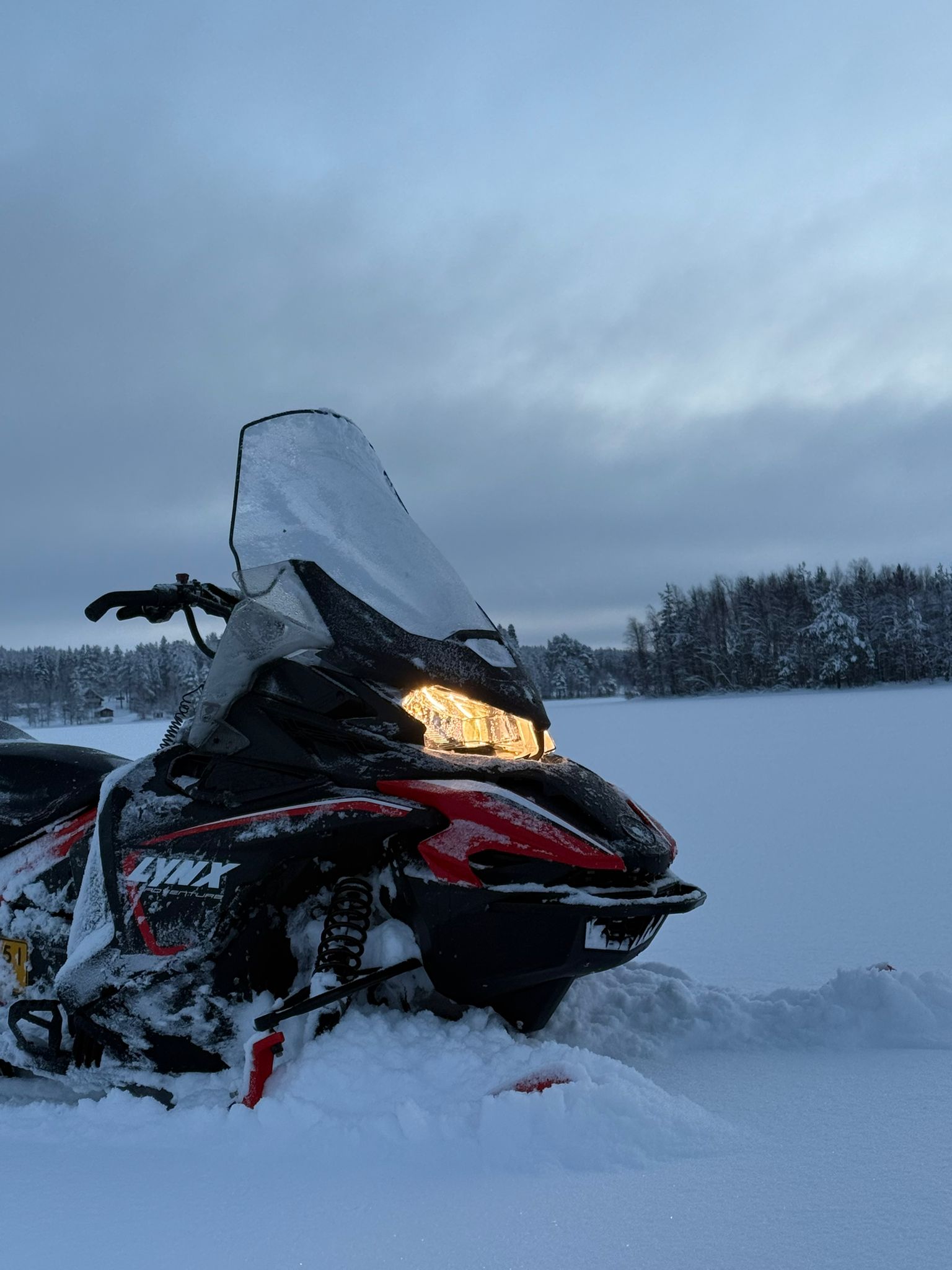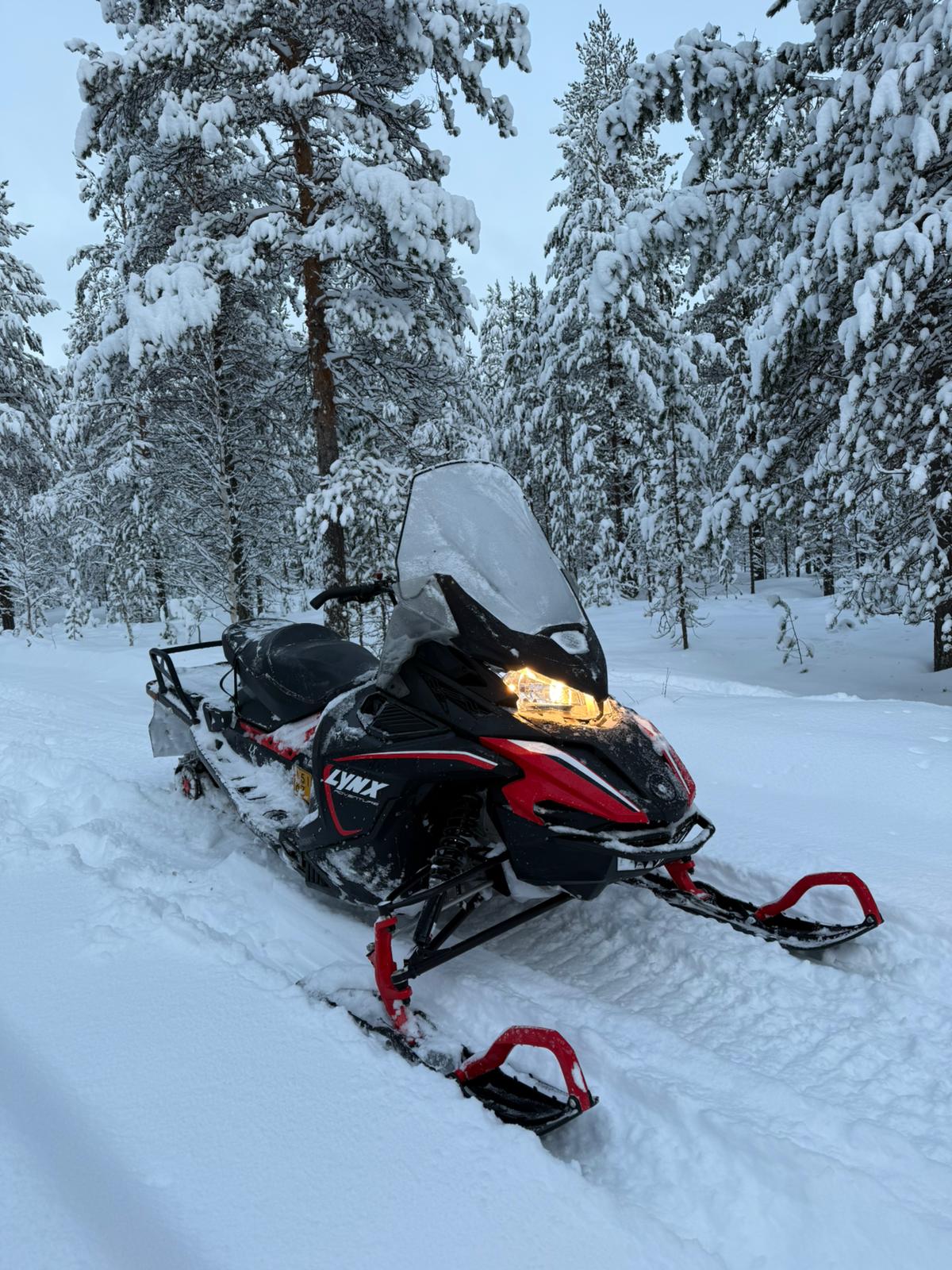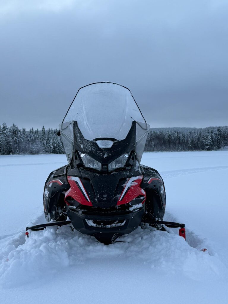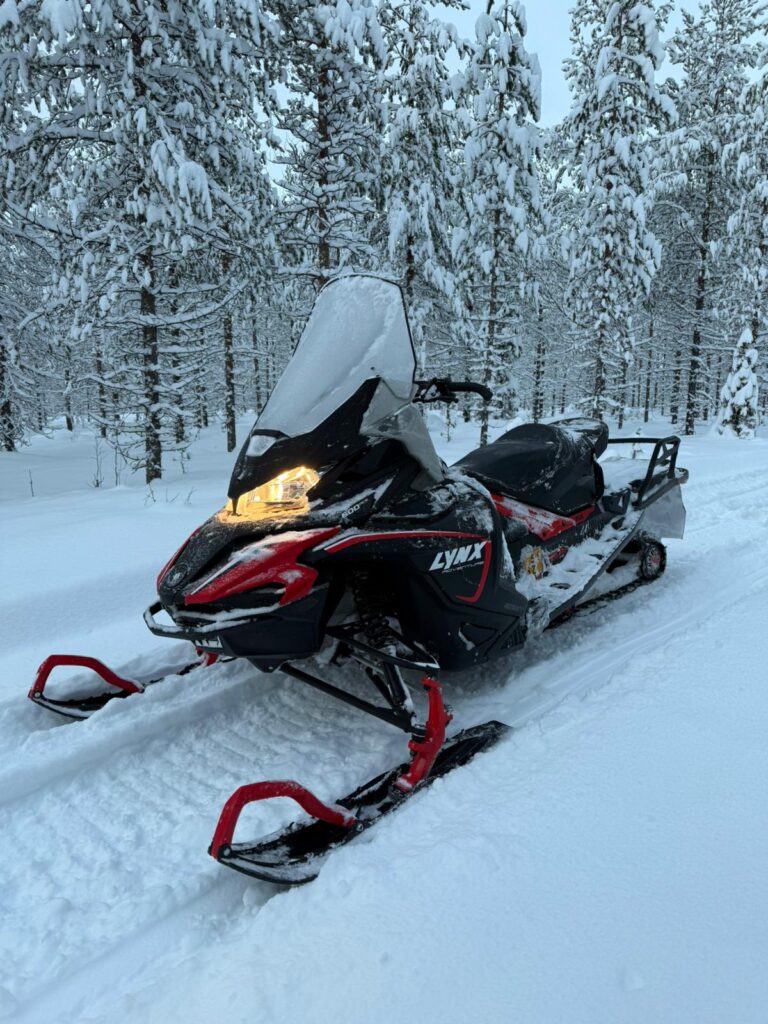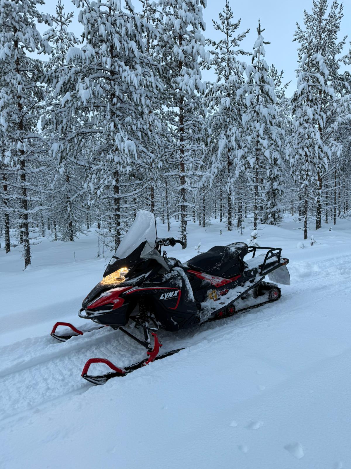 The route often runs through snowy forests, along the edge of frozen bogs or along the ice of a lake. The winter landscape is quiet and spacious: the branches of the fir trees bend under the weight of the snow, the air is fresh and your breath mists in the visor of your helmet. Sometimes you climb gentle hills, sometimes winding paths lead you deeper into the forest. The speed remains moderate, but the feeling of momentum is still strong.