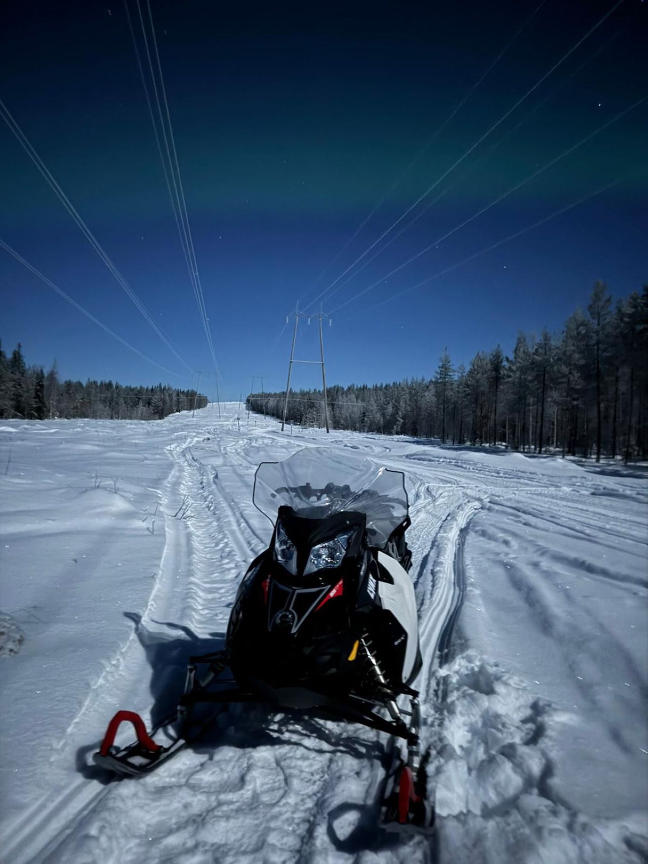 The route often runs through snowy forests, along the edge of frozen bogs or along the ice of a lake. The winter landscape is quiet and spacious: the branches of the fir trees bend under the weight of the snow, the air is fresh and your breath mists in the visor of your helmet. Sometimes you climb gentle hills, sometimes winding paths lead you deeper into the forest. The speed remains moderate, but the feeling of momentum is still strong.