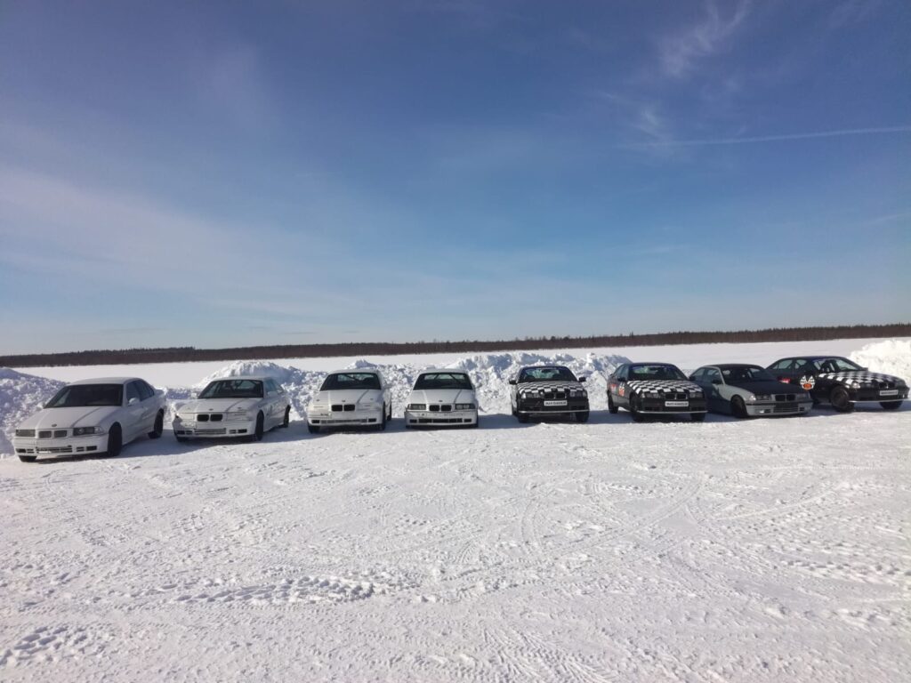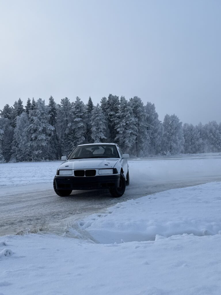 Rally car rides and racing in real Arctic conditions. Far far away, behind the word mountains.